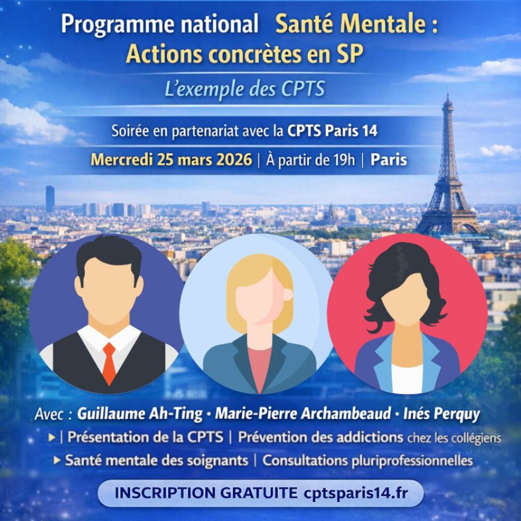 En partenariat avec la CPTS Paris 14, le SPI organise un temps d'échanges autour de projets concrets en santé mentale.